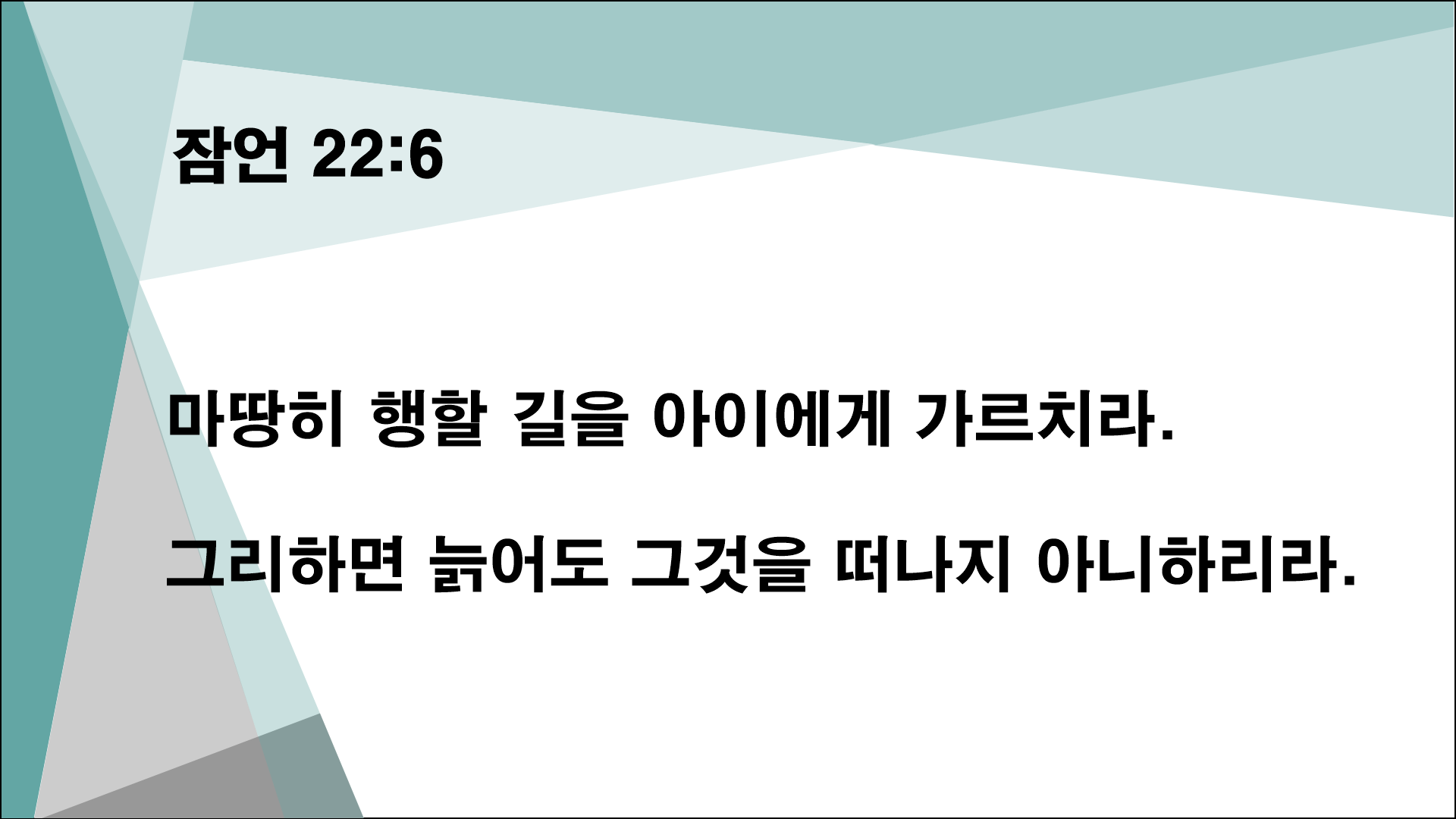 “마땅히 행할 길을 아이에게 가르치라. 그리하면 늙어도 그것을 떠나지 아니하리라.”