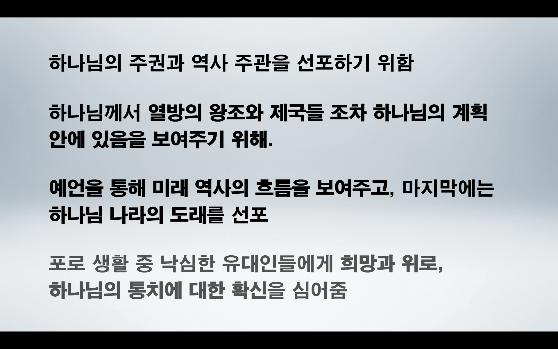 | 다니엘서 | 대답없는 하나님 | 다윗의 타락 | 1등 |