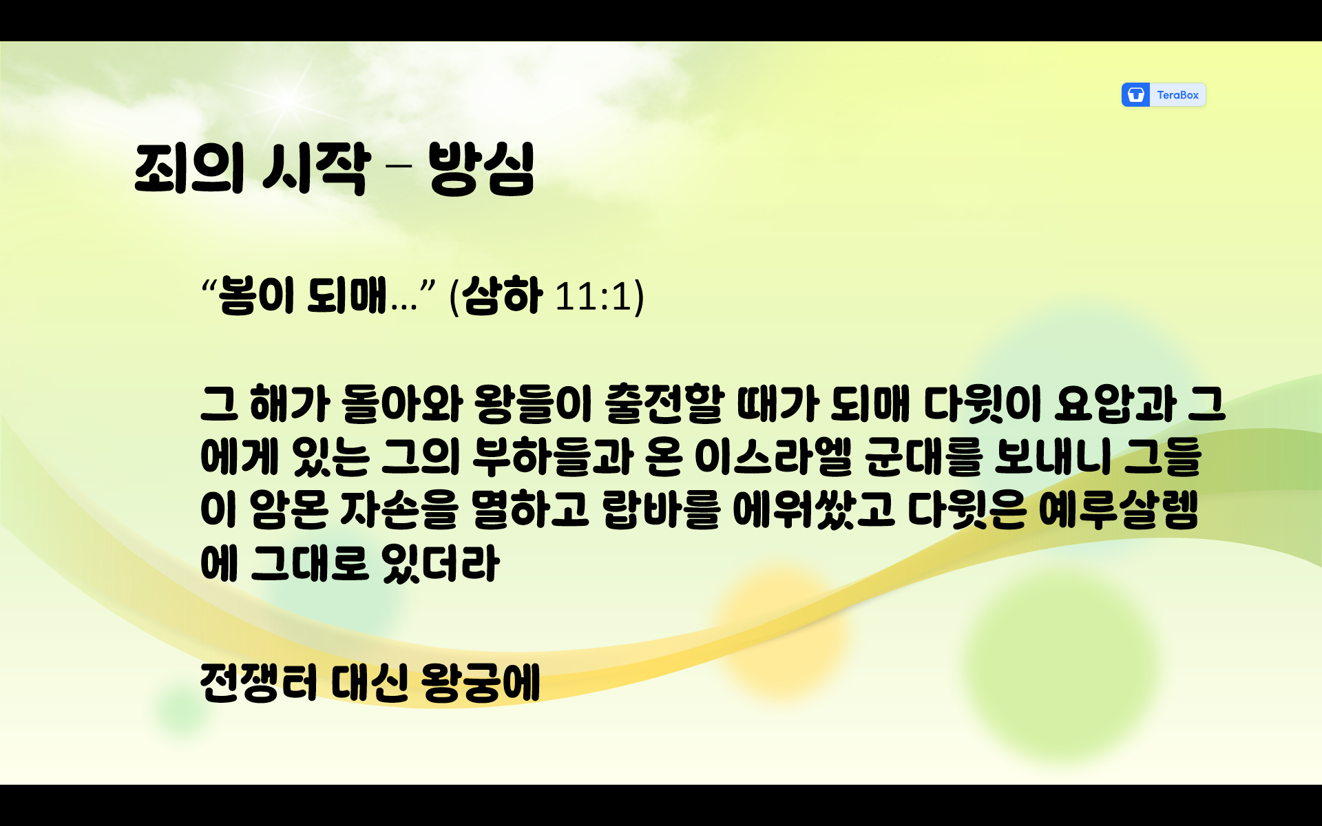 | 다니엘서 | 대답없는 하나님 | 다윗의 타락 | 1등 |