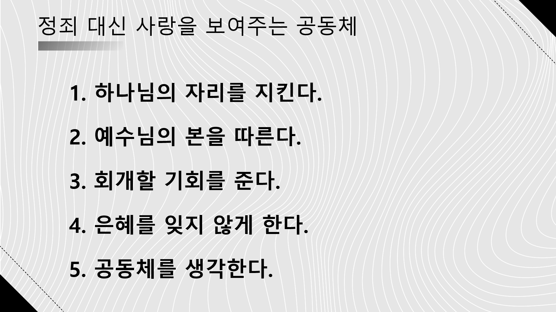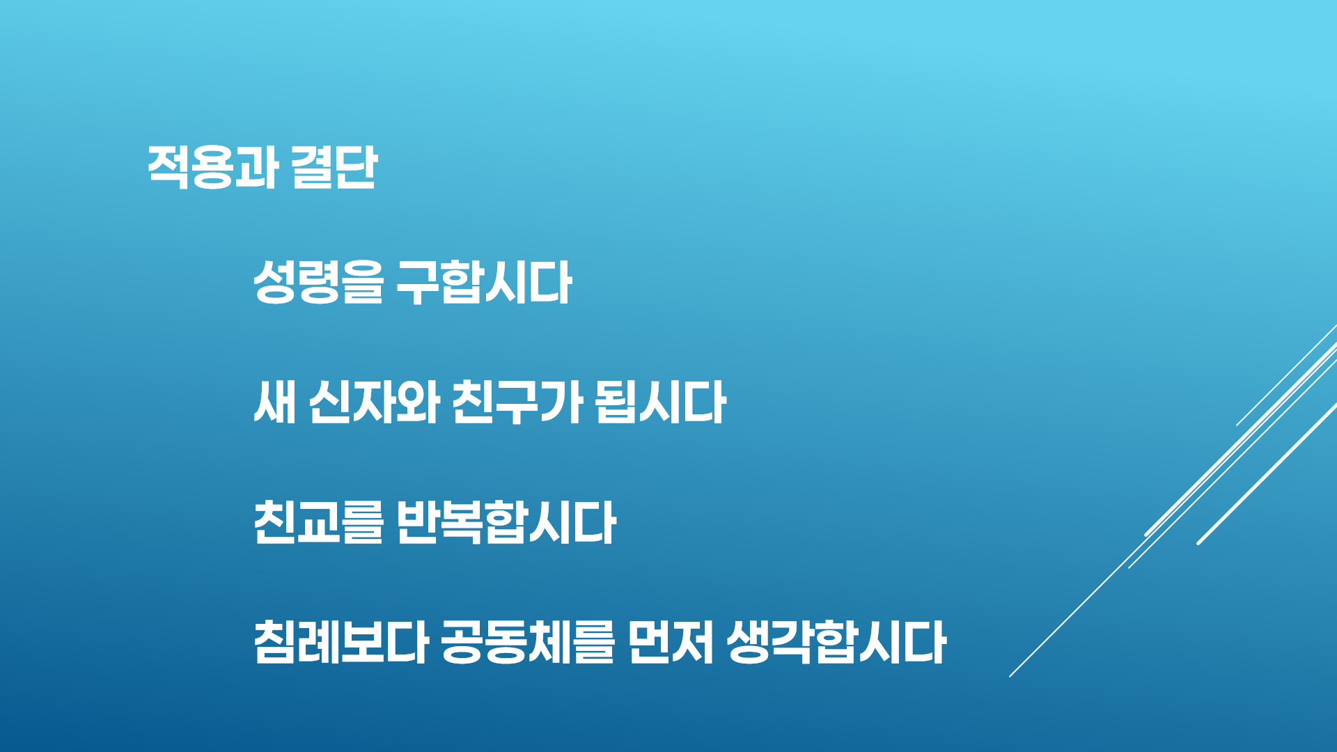 설교 4개를 하나의 파워포인트에 넣어서 클릭하면 한 개 씩 볼 수 있도록 했습니다. 설교자 위주의 말씀이 아니라 성도가 선택해서 설교를 듣도록 했습니다.
