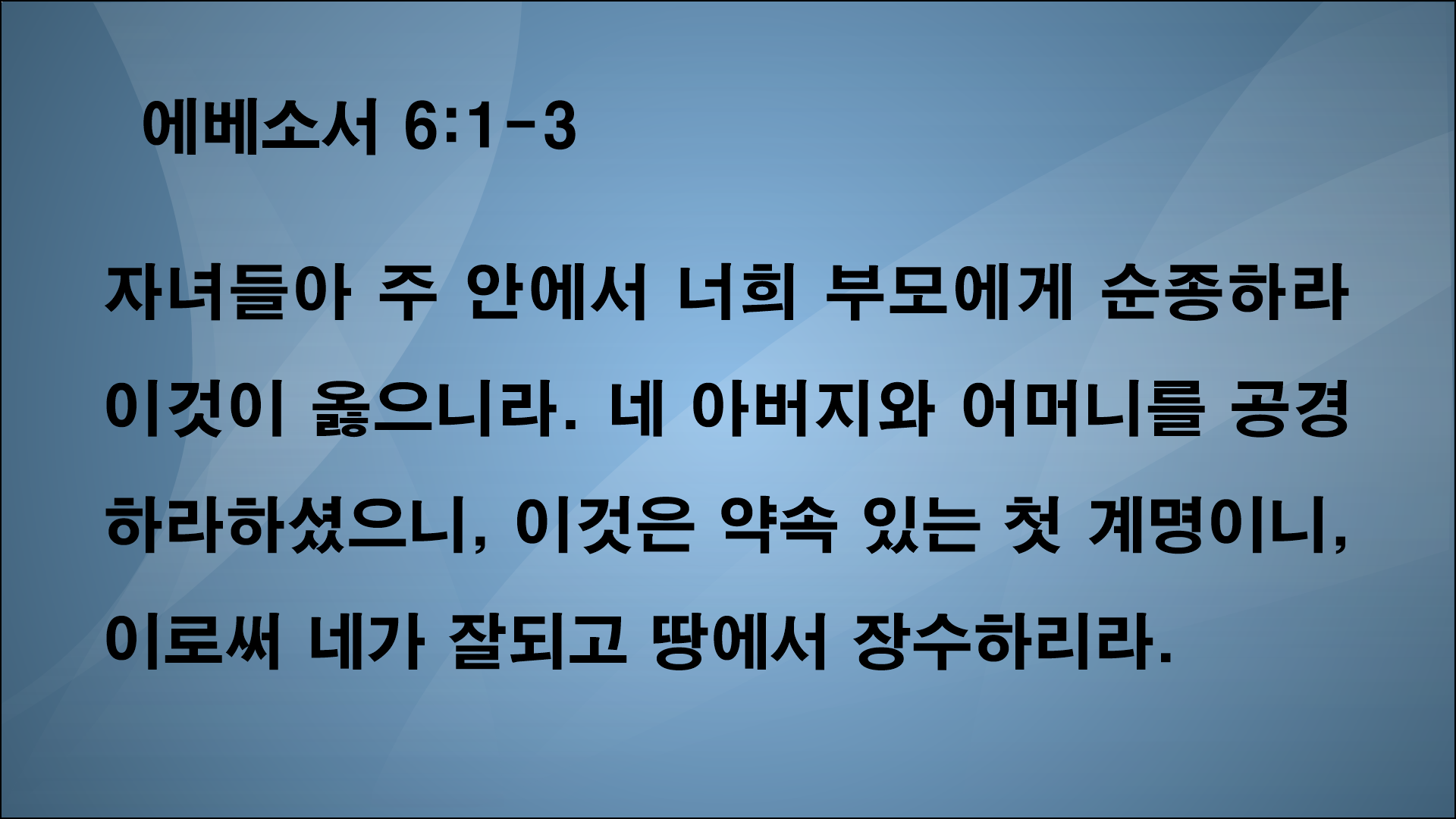 “자녀들아 주 안에서 너희 부모에게 순종하라 이것이 옳으니라