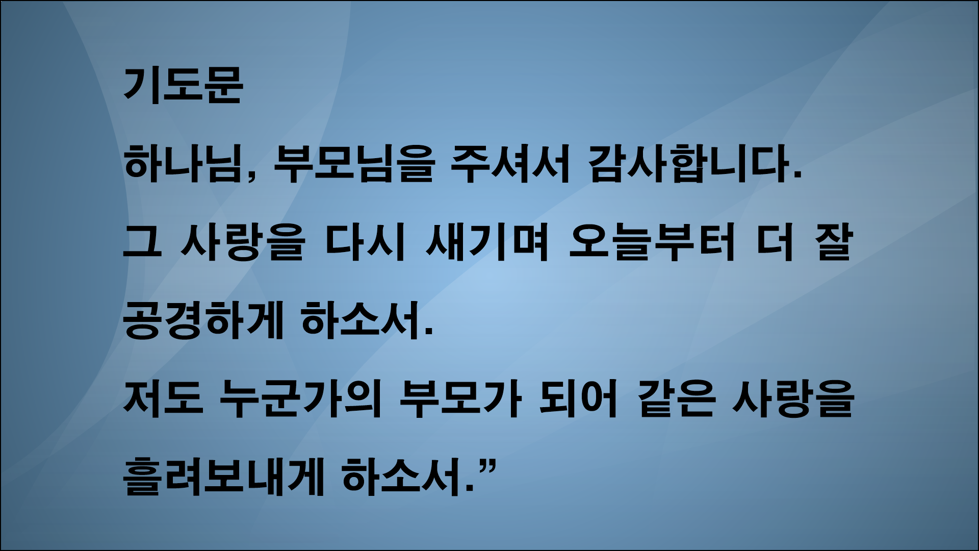 부모님의 건강과 평안을 위해 기도드리는 것, 그것도 신앙의 아름다운 실천이에요.