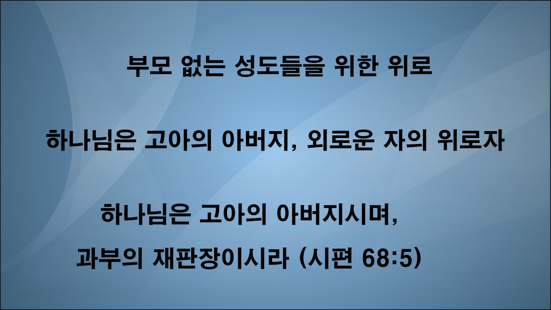 하나님은 고아의 아버지이시며, 외로운 자의 위로자이십니다.
