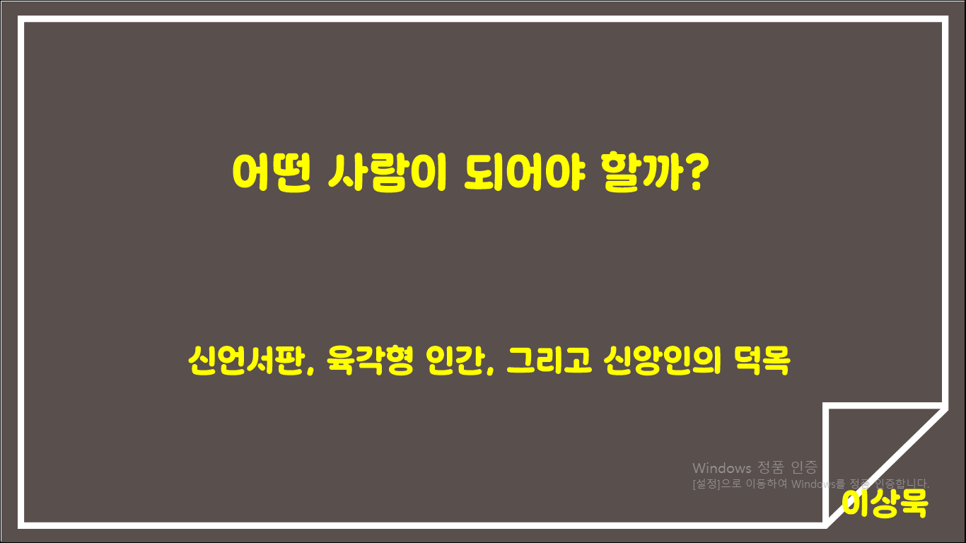 | 부모 공경 | 김장하 | 안식일의 축복 | 어떻게 살까? |